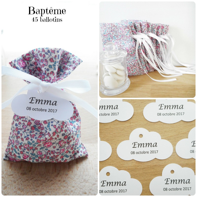 Pour commander je vous invite à me contacter par mail en indiquant le nombre de ballotins souhaité, le modèle qui vous intéresse, ainsi que vos souhaits pour les étiquettes (forme, coloris et texte). Je vous activerai ensuite une fiche produit qui vous sera réservée afin que vous puissiez passer commande en ligne. N’oubliez pas de consulter votre messagerie.